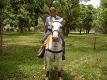 La entrevista fluyó  en medio de una cabalgata en Paquera, “me encanta esto por los caballos, las amistades, las comidas y la música. Antes se hacía al estilo tope, pero ahora se ha cambiado a cabalgata y aquí participan los caballos de todo tipo, los de trabajo y también los mas finos.