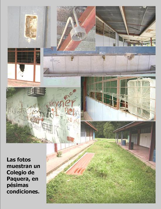 Junio 2008. El mal estado de las instalaciones del Colegio Técnico Profesional de Paquera, hizo que los padres de familia se acercaran a la institución con miras de revertir el proceso de deterioro, en el cual se encuentra la institución. Estructuralmente hay paredes, lavatorios, baños y techos destrozados, tomacorrientes y bombillos arrancados.