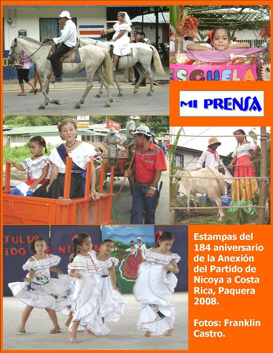 De las fiestas de julio, debemos subrayar que la Escuela Julio Acosta García del centro de Paquera y la Escuela de Guarial, organizaron por separado desfiles de carrozas y carretas, con motivo de las festividades del 184 aniversario de la Anexión del Partido de Nicoya a Costa Rica.