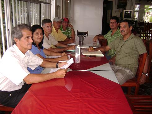 De izquierda a Derecha: Javier López, Isabel Naranjo, Marvin Loría, Darío Pérez, Rónald Cruz, Roberto Varela y Rodrigo Zamora. Líderes peninsulares se reunieron el viernes 15 de julio 2011 en Paquera. Franklin Castro, MI PRENSA.